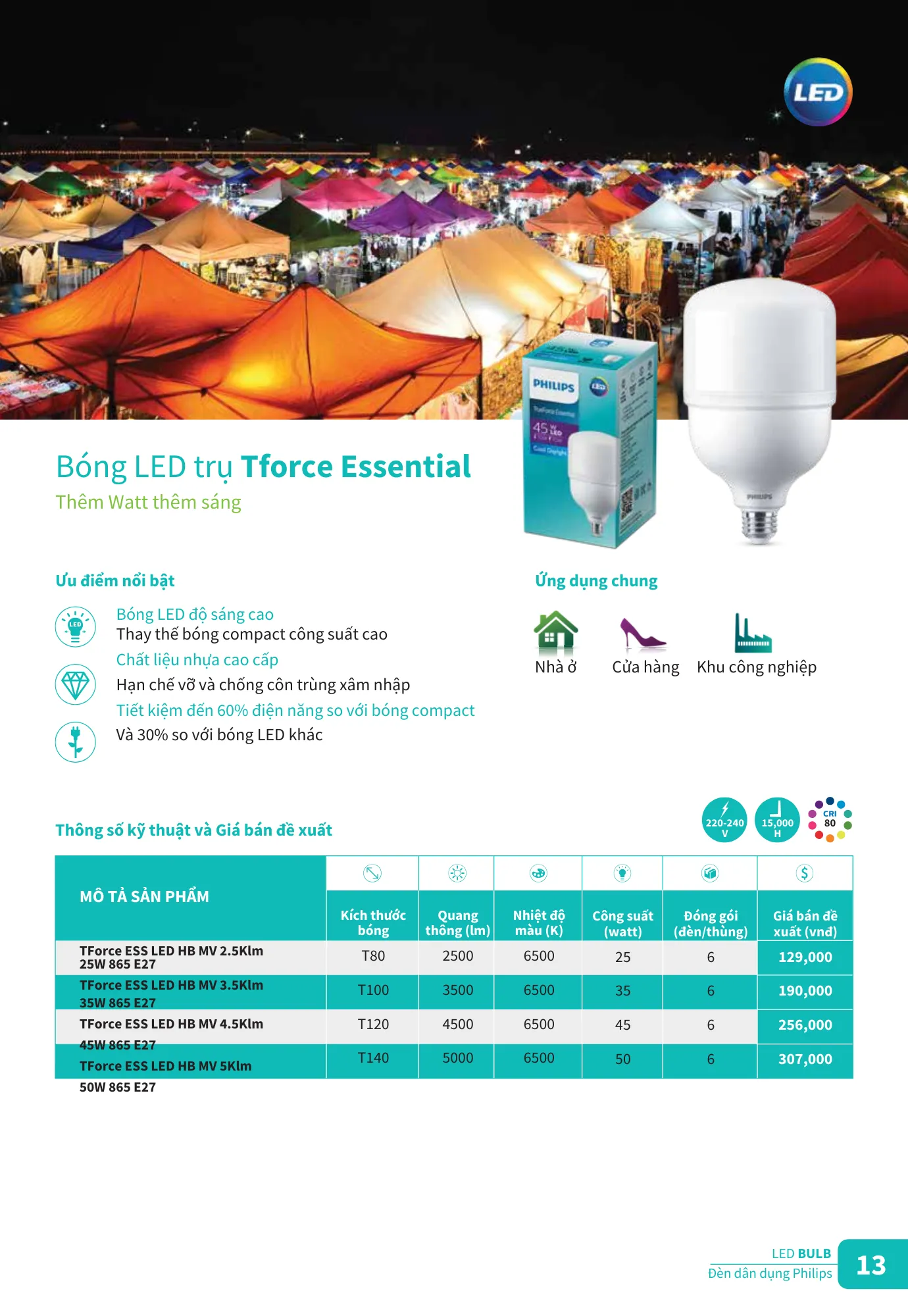 Thông số kỹ thuật chi tiết trong catalogue bóng đèn Led Philips TForce.