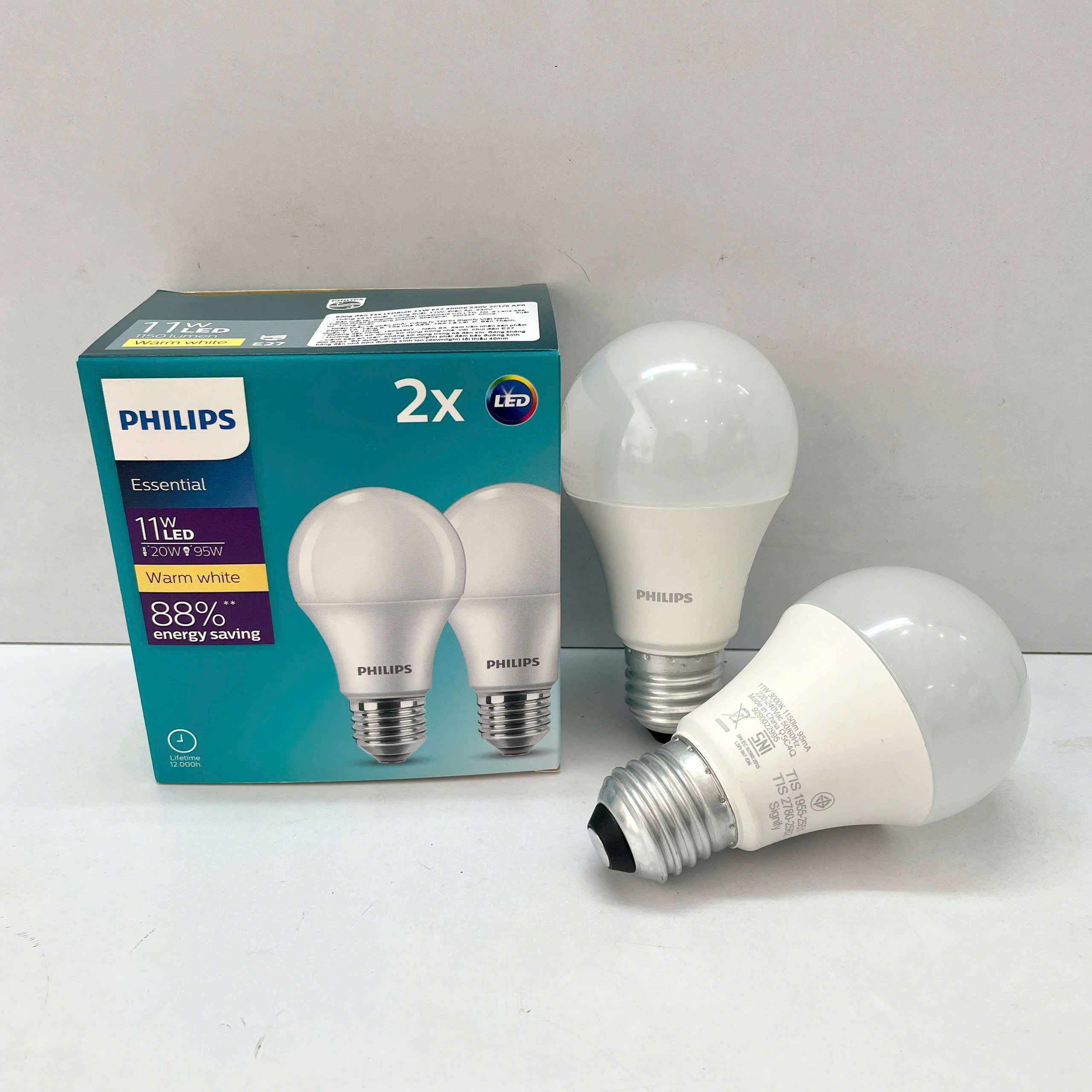 Combo/Set 2 Bóng đèn Led bulb tròn Philips Essential 11W E27 3000K mang lại hiệu suất chiếu sáng cao.