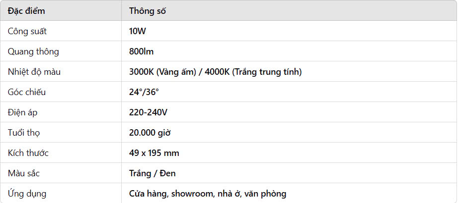 Ánh sáng chất lượng cao: Chỉ số hoàn màu (CRI) cao, giúp tái tạo màu sắc trung thực.
