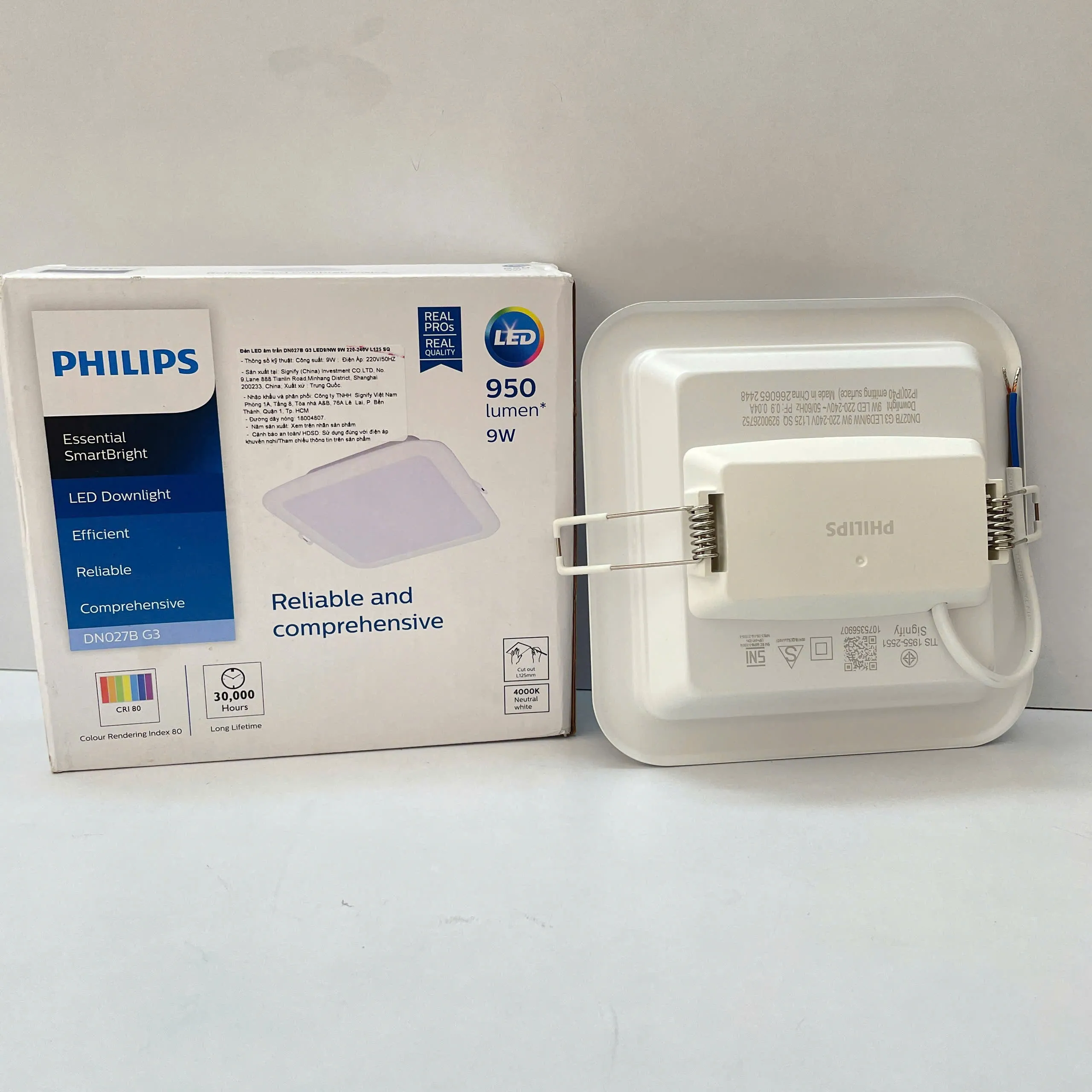 Hiệu suất đáng tin cậy của Đèn downlight âm trần vuông Led Philips DN027B.