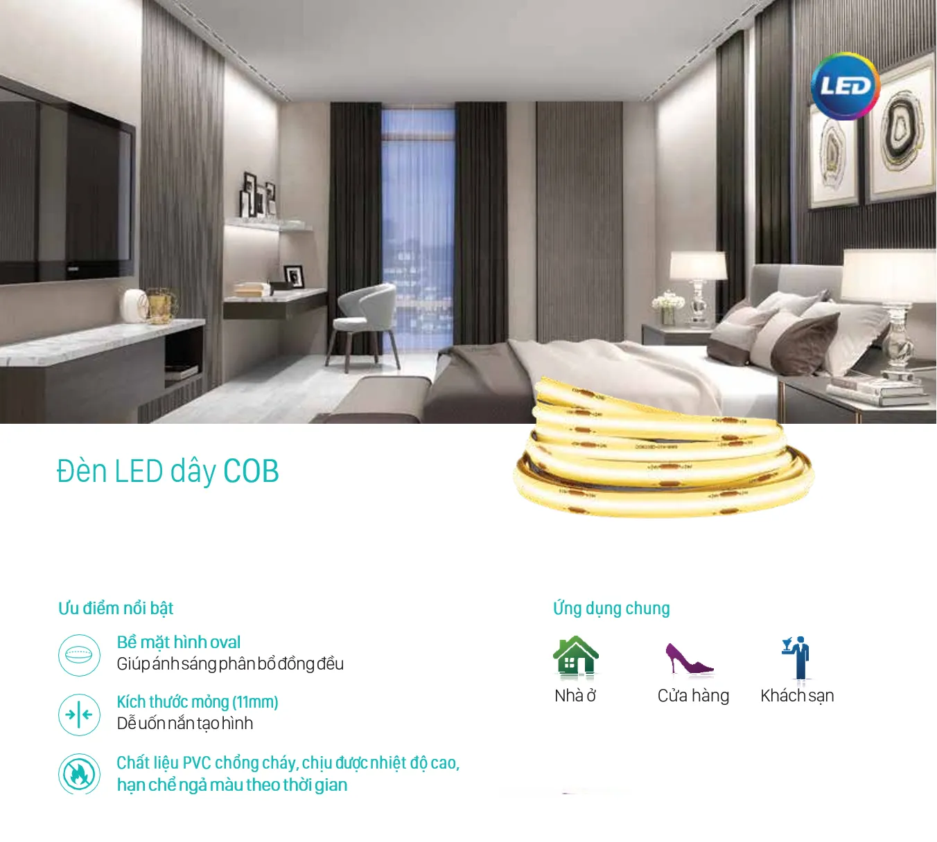 Đèn LED dây trang trí hắt trần Philips oval LS161 COB LED8 biến không gian thành tác phẩm nghệ thuật. Trải nghiệm căn phòng ngập tràn ánh sáng dịu nhẹ, sang trọng, tôn vinh mọi chi tiết nội thất. Phản ánh gu thẩm mỹ tinh tế, đẳng cấp của gia chủ.