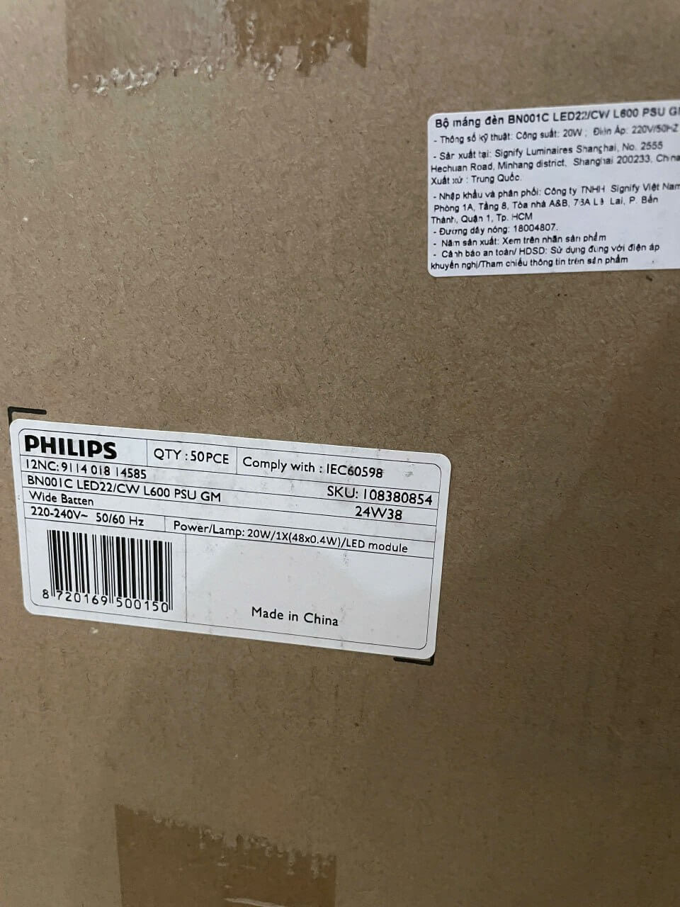 Thông số kỹ thuật Máng đèn Led bán nguyệt Philips BN001C.
